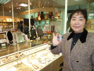 このお店はシャンデリアとかショーケース棚、ソファが有名です。倉庫市で人形とガラススタンドを洋子ちゃんが買いました